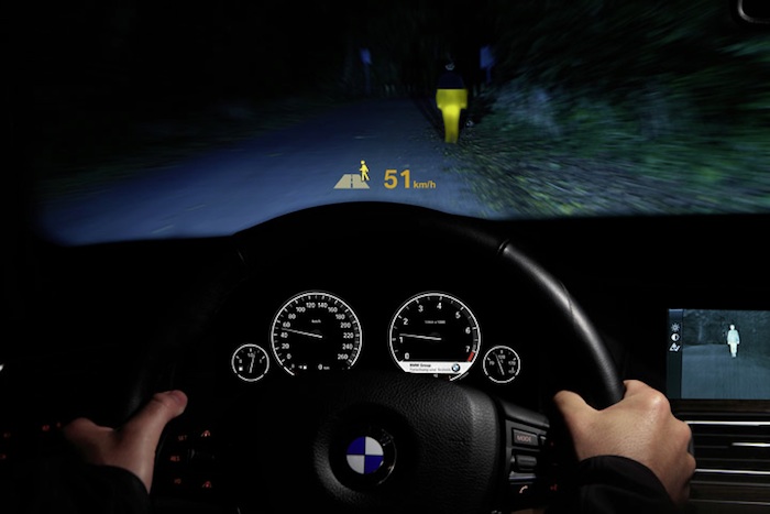 La ventaja de trabajar sobre imágenes proyectadas es que toda la información irá procesada y los sistemas de ayuda a la conducción serán mucho más útiles. En una pantalla es posible avisar de los peligros con mayor facilidad. Rodear con un círculo rojo esa vaca parada en la carretera, en mitad de la noche, y que el ojo humano no ve. El ojo humano no lo ve, pero uno de los ojos del coche sí puede verla, detectarla, identificarla y avisar al cerebro humano, a través de sus ojos o de cualquier otra manera, de que hay peligro inminente.