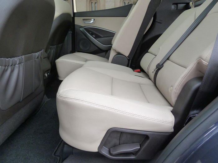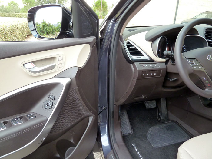 El Hyundai Santa Fe tiene un defecto grave en el interior. No lleva anclajes para colocar una cortinilla vertical de seguridad como la que sí tiene, por ejemplo, el Chevrolet Cruze SW. La cortinilla vertical es un equipamiento de seguridad imprescindible cuando se llevan bultos con los asientos plegados o sin la cortinilla que recubre el maletero. Esta cortinilla tiene una importancia equiparable a la del cinturón de seguridad. En un accidente, los bultos situados en el maletero pueden convertirse en proyectiles. Es imprescindible disponer de un sistema de retención que impide que entren en contacto con los pasajeros. El Hyundai Santa Fe no la lleva. No es un coche recomendable para llevar equipaje con los asientos plegados o sin cortinilla posterior.