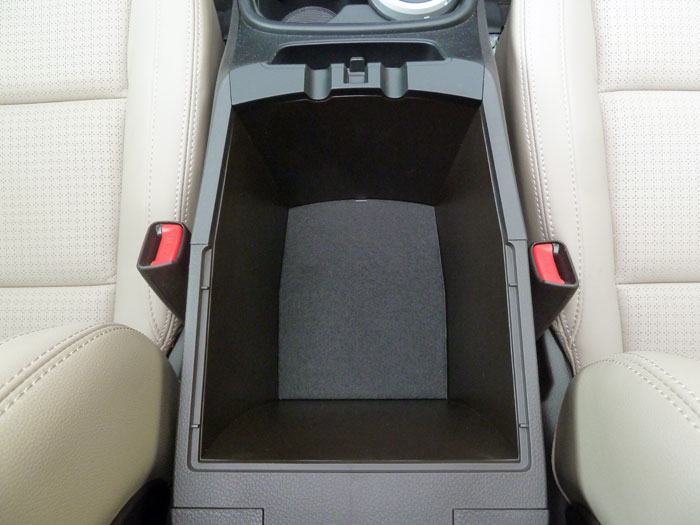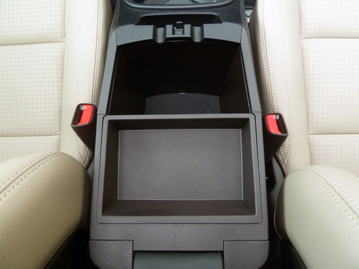 Cajetín grande y con bandeja de quita y pon bajo el reposabrazos central.