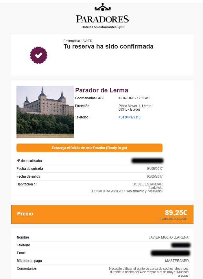 La noche del jueves al viernes la he programado para dormir en el parador de Lerma, donde me han asegurado que podré cargar el coche. Espero que su sistema de carga no dé problemas, porque si no me pierdo el Rallye.