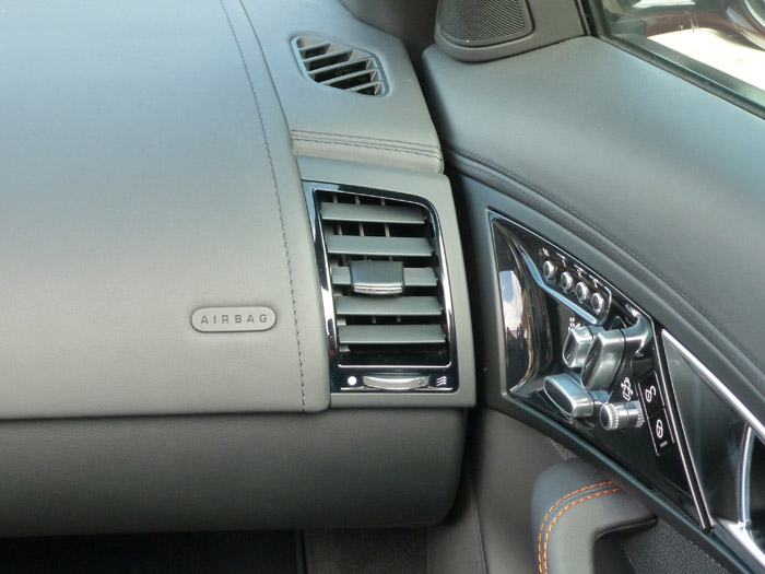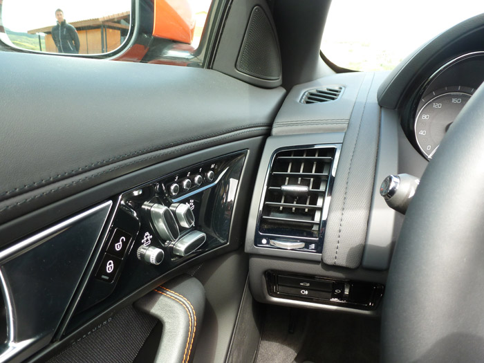 Entre los Jaguar F-Type que he conducido había dos volantes diferentes, una más ancho, el que aparece en esta foto primera, que correspondía a la versión V8 y otro con el aro más fino, que llevaban las unidades con motor V6. Por si se puede elegir, este del V8 se agarra mejor que el del V6.