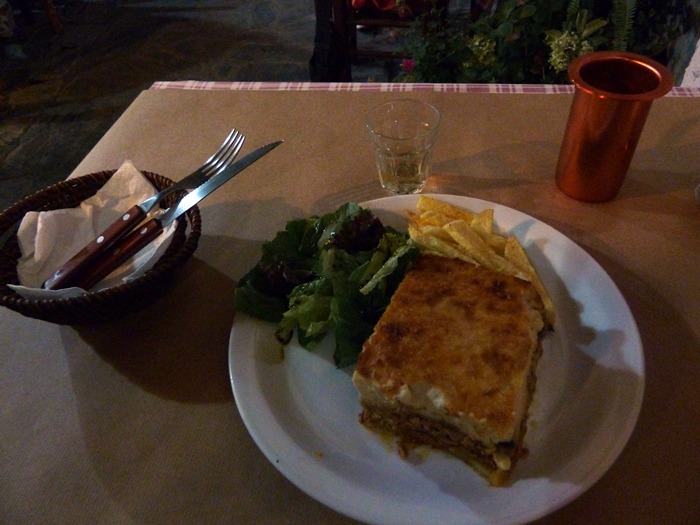 … comer Moussaka. Es la mejor Moussaka que he comido en mi vida. He comido muchas Moussakas, pero eso es irrelevante. Vengan y pruébenla y si no les gusta yo se la pago. Me lo agradecerán toda la vida. La Moussaka me ha costado 6,50 Euros, pero eso también es irrelevante, o casi.