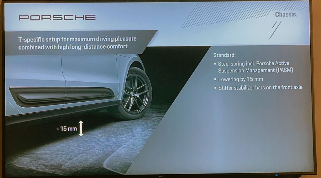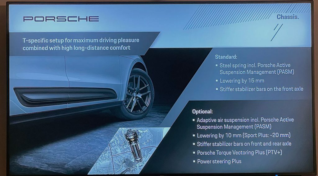 Pruebo dos Macan T. El primero con muelles helicoidales metálicos y sin el sistema «Porsche Torque Vectoring Plus» (PTV+). El segundo con suspensión neumática y «PTV+».