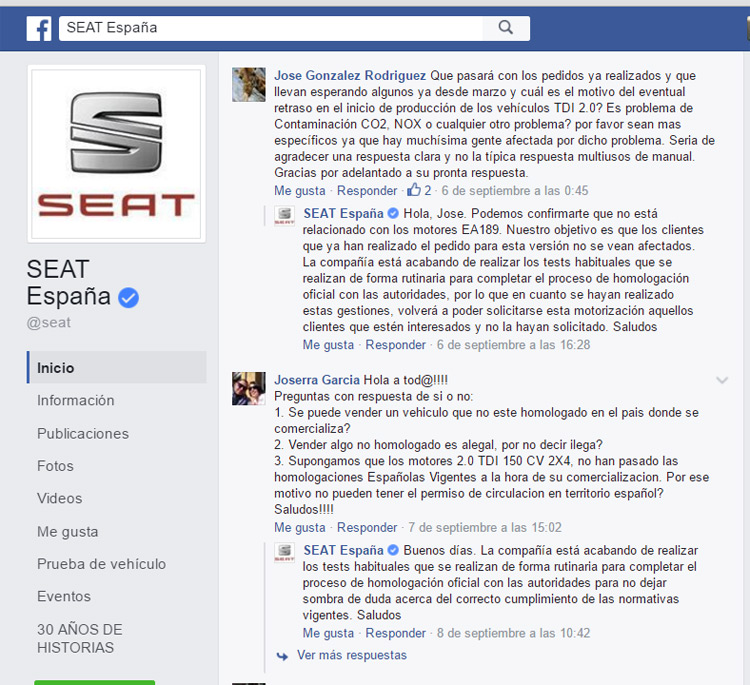 Gracias al comentario de José Ramón he localizado las explicaciones que Seat ha dado en los últimos días en Facebook y cómo esas explicacioneshan cambiado.