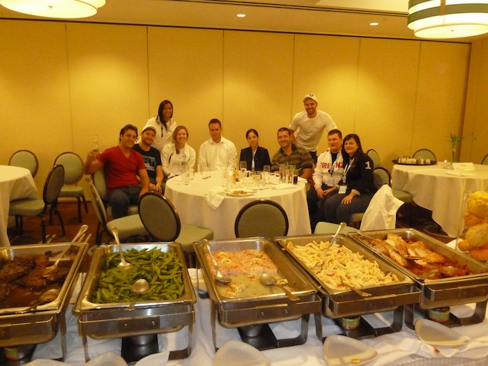 Tras el largo día de viaje, cuando los dedos de luz ya debían tintar de rosado las nubes sobre España (no me acuerdo de como describía Cervantes estas cosas del amanecer en el Quijote, pero por fuerza se tenía que parecer en algo a esto), la jornada terminó con una cena y el encuentro con los componentes de otros equipos.