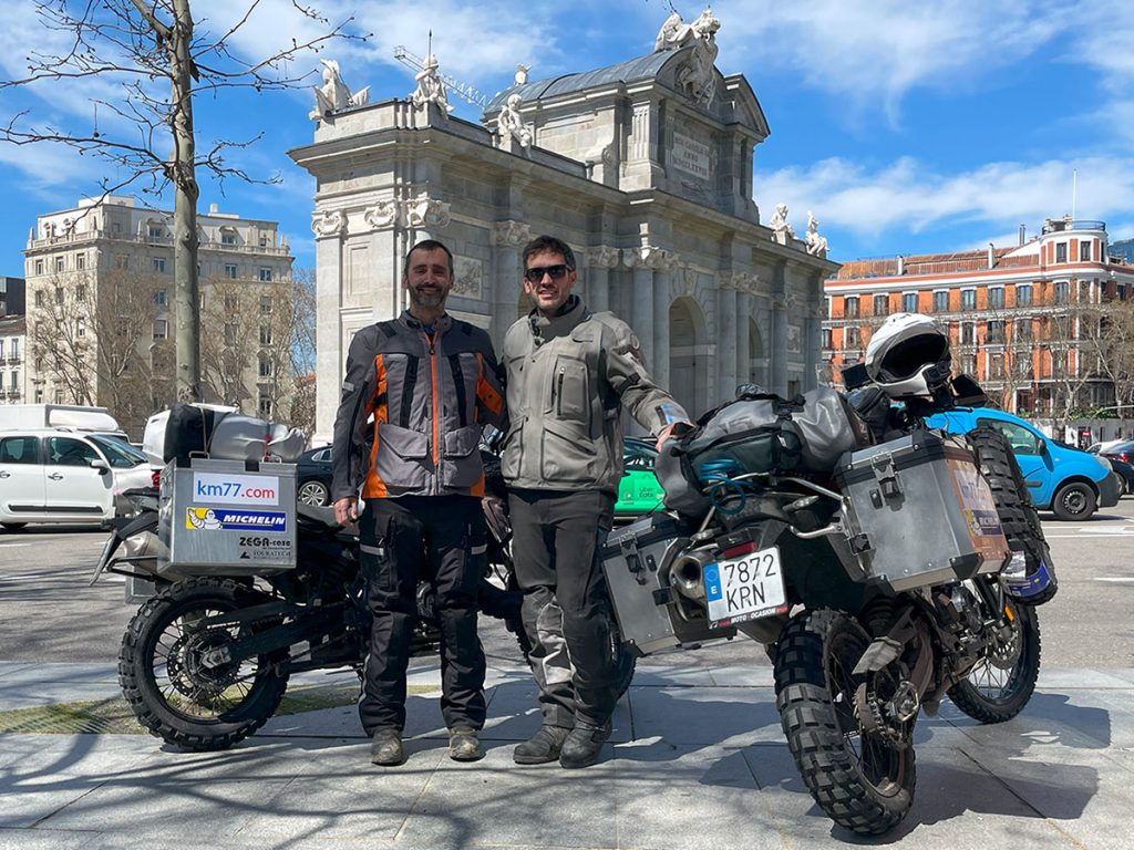 El viaje a conocer mundo de Carlos y Quique, de Quique y Carlos, consiste en salir en moto desde Madrid (salieron el viernes 28 de marzo de 2025 sobre la una y media del mediodía), y lanzarse a conocer mundo rumbo Este, por caminos de tierra, en buena medida.