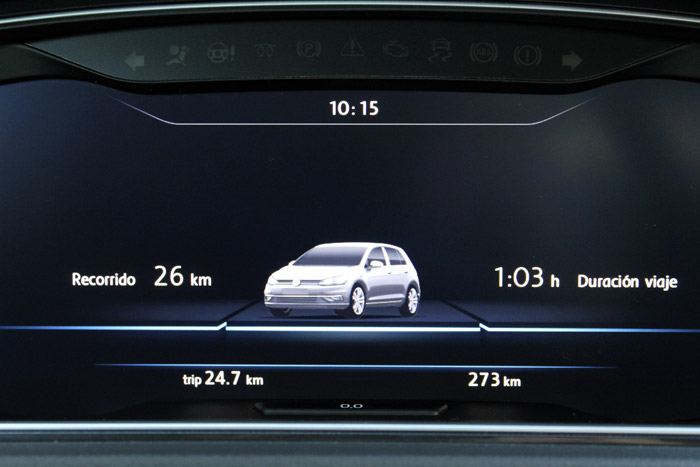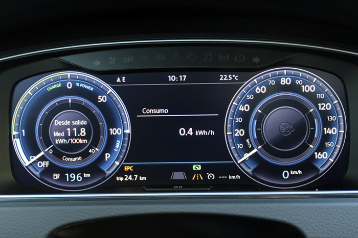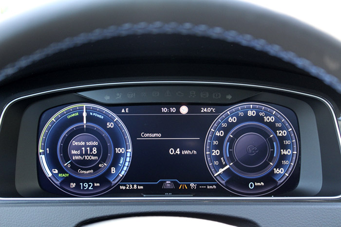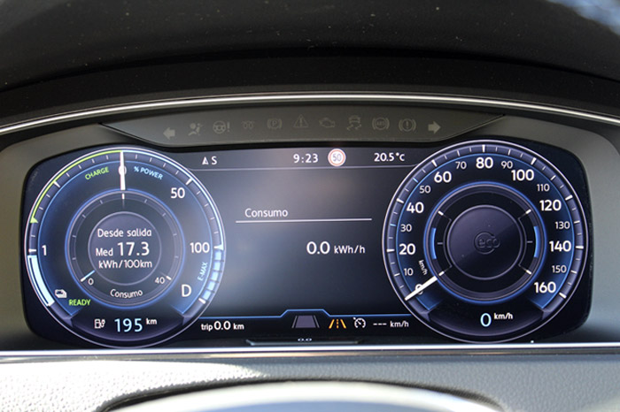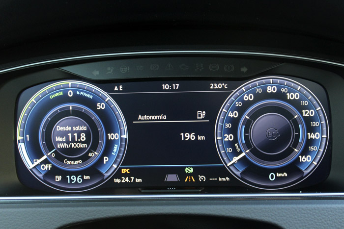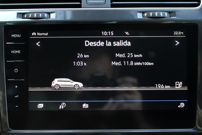 El horario de pruebas empezaba a las 10:00. Yo a las 9:13 ya le había hecho la primera foto al e-Golf, sin quitarle el polvo a la pantalla. La autonomía, cuando me subí en él, indicaba 196 kilómetros.