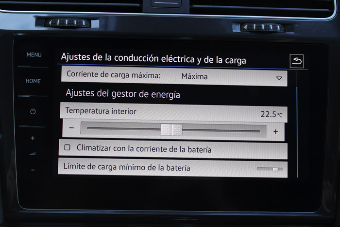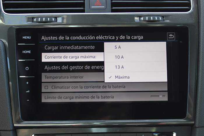 Ya llego a mi destino. El coche permite ajustar la intensidad de carga. Muy útil para no sobrepasar la potencia máxima contratada en el domicilio.