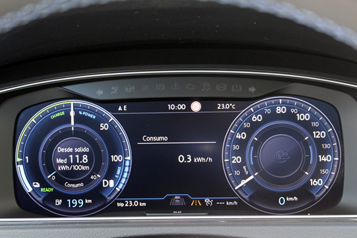 Con el coche parado y el aire acondicionado conectado de nuevo el consumo es de 0,3 kWh cada hora. Este dato implica que en ciudad, a una media inferior a 33 km/h, el aire acondicionado incrementa el consumo más de 1 kWh cada 100 kilómetros.