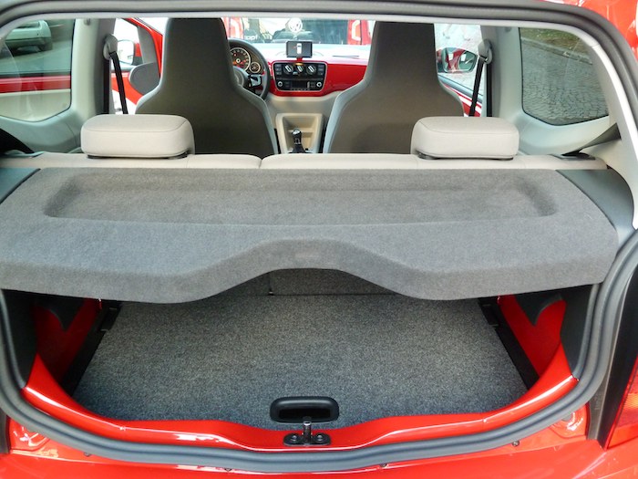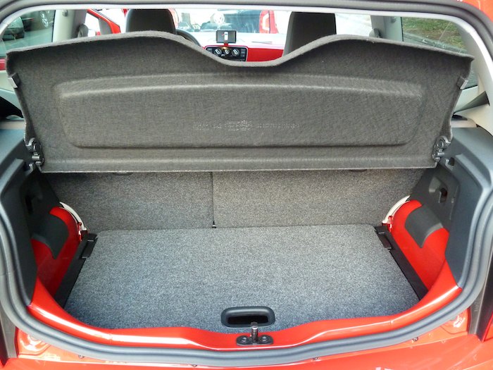 El interior del up! es suficiente en longitud. Dos adultos de estatura media (alrededor de 1,75 metros de altura), caben con holgura sentados uno detrás de otro. Incluso con personas muy altas, de más de 1,90 metros sentadas en el asiento delantero, una persona de 1,70 metros puede ir sentado detrás con relativa comodidad si la persona alta sentada delante ajusta el espacio para sus piernas. No es recomendable, porque sus rodillas pueden quedar muy cerca del salpicadero y la guantera, pero es posible sin demasiada incomodidad según decía la persona alta.