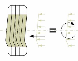 Como se ha dicho, llega un momento en que la parte trasera de la huella se empieza a saturar y deja de incrementar su aporte a la fuerza lateral total, mientras que zonas más frontales incrementan su participación.