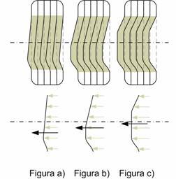 Esto reduce la asimetría de los esfuerzos laterales (Figura b), acercando el punto de aplicación de la fuerza lateral resultante al centro de la huella. En otras palabras, la rueda disminuye su par de autocentrado. Esto es percibido por el conductor a través del volante, que siente que la dirección se suaviza y requiere menos esfuerzo. Es una señal valiosísima para estimar a qué distancia se encuentra del límite de adherencia de los neumáticos delanteros, y por eso es tan importante que la dirección asistida no filtre en exceso esta sensación. En casos extremos (Figura c), el par de autocentrado por arrastre neumático de la rueda se hace muy pequeño e incluso negativo. Es decir, si éste fuera el único origen de la tendencia autocentrante del volante, llegados a su límite de adherencia la rueda podría intentar cerrar más la dirección.