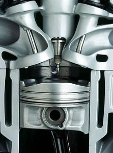 Este sistema de encendido tuvo su precursor en el concepto «chispa al pistón» presentado por Saab en el Salón de Francfort de 1995. |